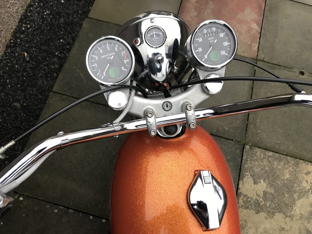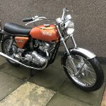 Previous owner stripped it 20 years ago to rebuild/restore but never finished it due to ill health. He couldn’t make up his mind whether he wanted an Intersate, Roadster or Fastback so bought the different parts to see what he preferred. He fancied the Fastback look so fitted the rare early drum front brake, then found out the Fastback seat, tailpiece, side panels, don’t fit the 850 frame, so it’s back to being a Roadster. I’ve fitted new Boyer Branson electronic ignition, a new battery, fresh oils, petrol, balanced the carbs and it’s now ready for a new owner.