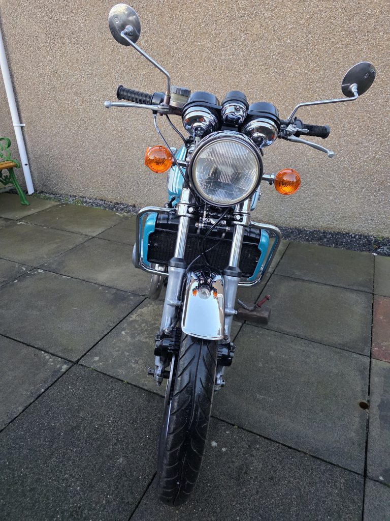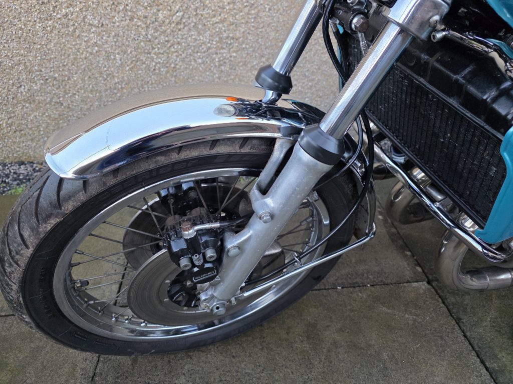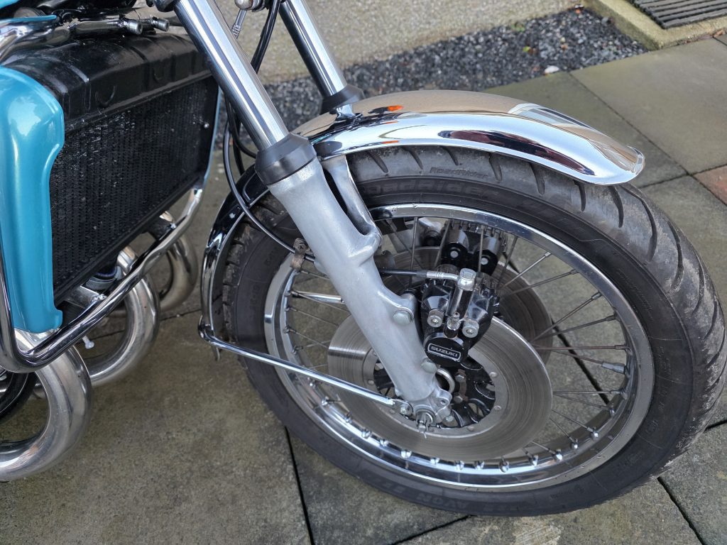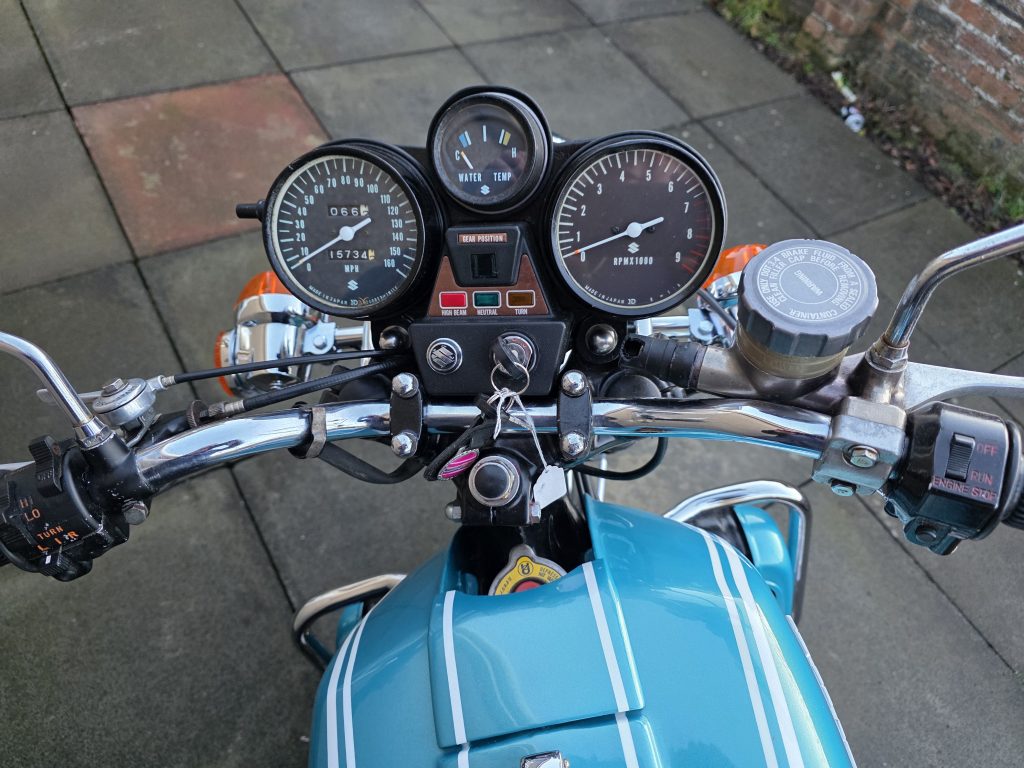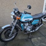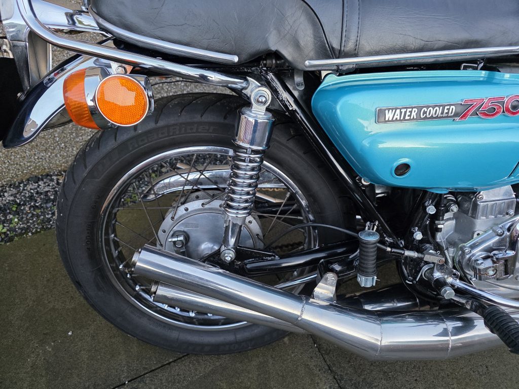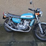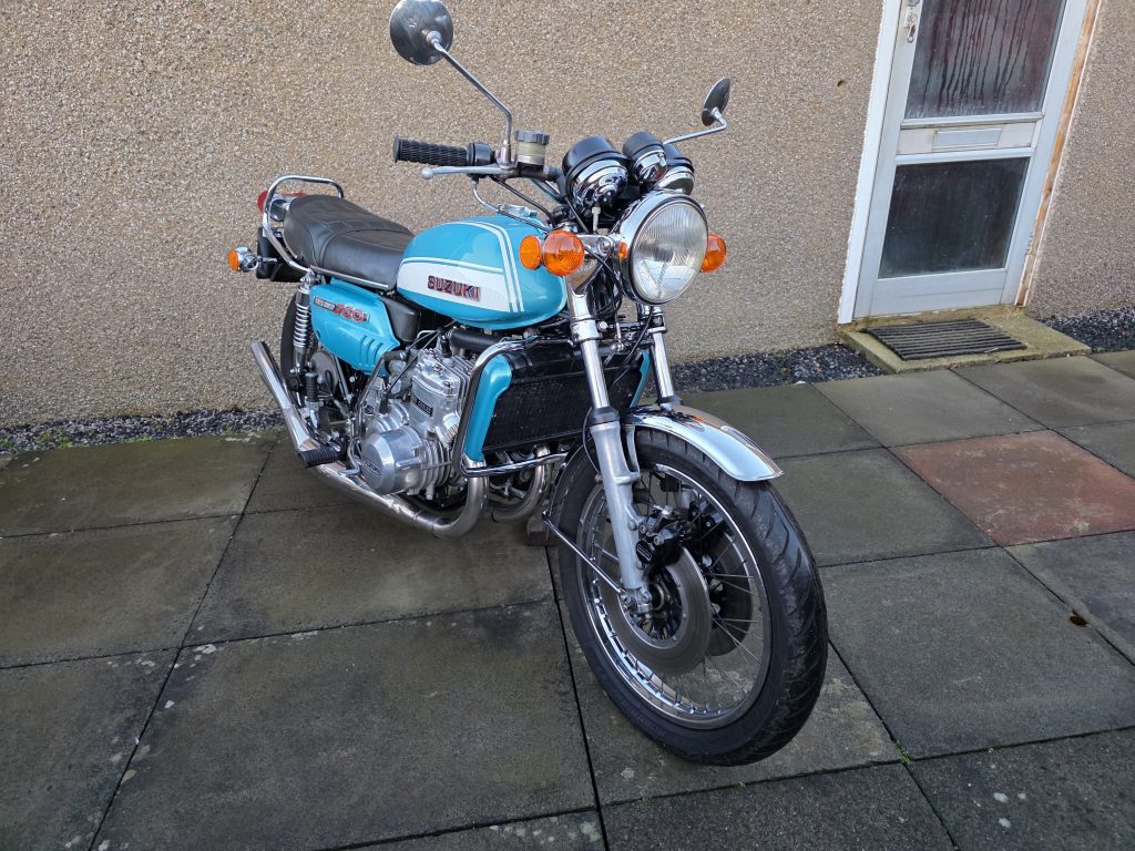 1972 Suzuki GT750. A very tidy bike that starts on the button, sounds lovely and goes as good as it looks. Piles of receipts showing thousands spent over the years. Fitted with Higgspeed expansion pipes, standard pipes included in sale.